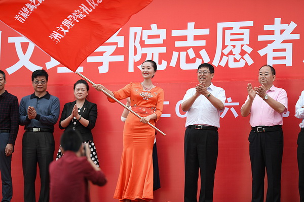 此次出征仪式的举行,标志着我校志愿者服务队将正式开始文博会服务工作,衷心祝愿我们的志愿者能够圆满完成使命,为首届丝绸之路(敦煌)国际文化博览会增添一抹亮丽的风景。