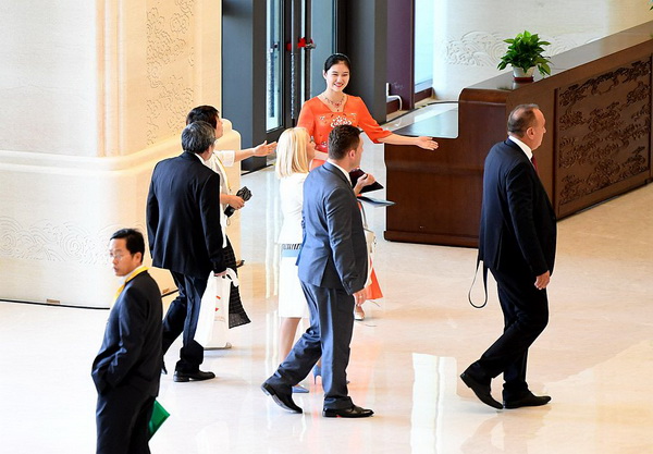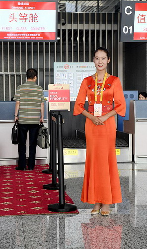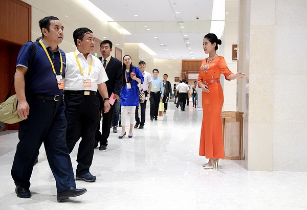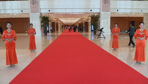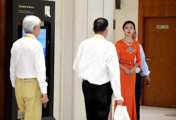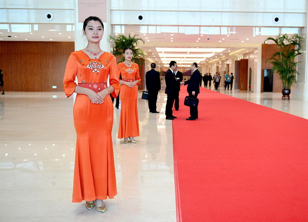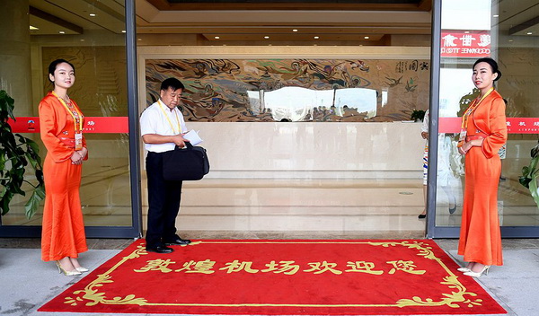 9月20日上午,我校46名承担本届大会礼仪志愿服务的同学们一大早就进入了场馆。在经历了几个月的强化集训后,这一天,她们走上了各自的工作岗位,为文博会期间来自全世界的宾客提供礼仪服务。从会展中心开幕式现场到各专项论坛分会场,从敦煌大剧院到敦煌火车站、飞机场,处处可见我们礼仪服务志愿者靓丽的身影。她们克服了训练中遇到的伤病,战胜了集训中遇到的困难,身穿着为她们量身定做的礼仪服,如同一朵朵充满活力的小花,绽放在文博会的舞台上。连续几个小时的站立,穿着7厘米左右的高跟鞋,没有任何一位同学叫苦叫累,她们始终坚守着自己的位置,保持着挺拔的站姿和温暖的微笑。同学们的表现也获得了来自世界各国的宾客们的一致认可,会后,很多国外来宾主动要求与我们的礼仪服务志愿者合影留念。