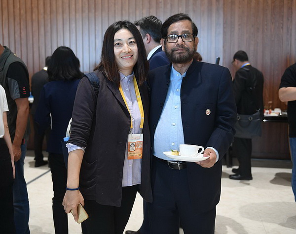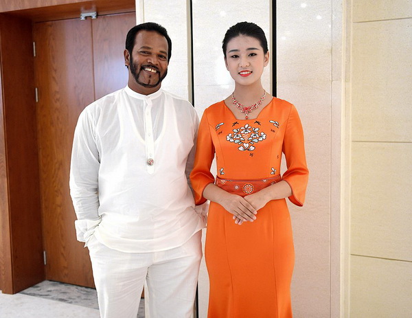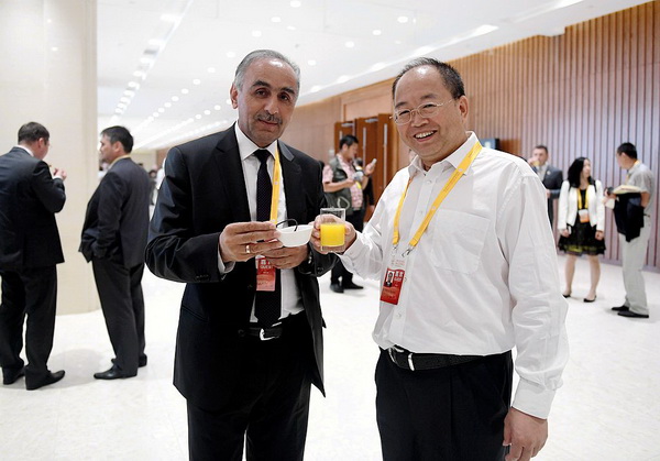 图为校党委书记史百战与塔吉克斯坦文化部部长沙姆希金先生在会场合影