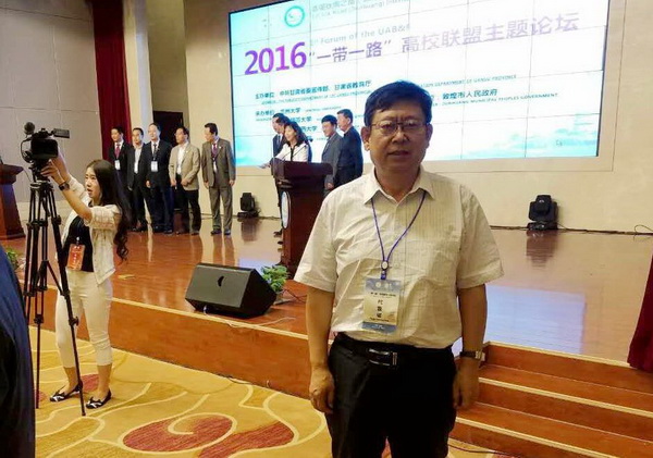 图为校长汪建华在“2016‘一带一路’高校联盟主题论坛”会场