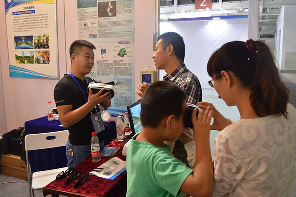 在展览期间,我院展出作品吸引参展人员前来参观,参观人员体验了VR虚拟旅游,并就虚拟现实技术进行咨询,我院师生耐心为参观人员讲解。学生制作的2D转3D影片也成为一大亮点。