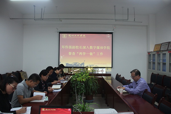 9月28日下午,郑伟强副校长深入联系学院督查 “两学一做”工作,学院党总支书记陈小琴主持并汇报工作,张毅副院长及各支部负责人听会。