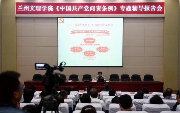 《中国共产党问责条例》是今年7月8日中共中央印发并施行的重要党内规章制度,是继《廉洁自律准则》和《纪律处分条例》之后,又一重要制度创新,体现了党中央全面从严治党的决心。按照省纪委派驻教育厅纪检组的安排部署,我校开展了全方位、多层面宣讲活动,这次专题辅导报告会系学习贯彻《问责条例》系列活动之一。