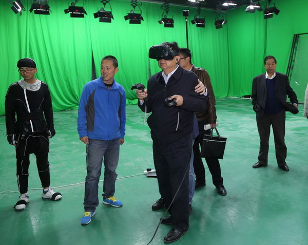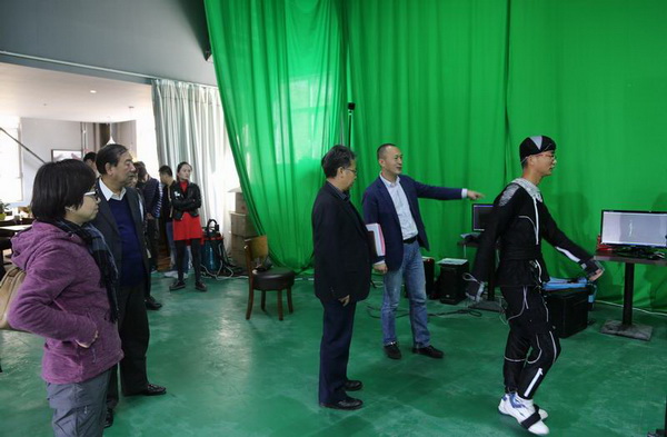 随后校长汪建华教授一行在卢明总经陪同下参观了读者动漫多功能动作捕捉摄影棚所有功能区域,并展示了多功能动作捕捉、近期制作影视作品。并感受了读者动漫最新推出在9月底登录法国巴黎艺术展的的历史再现工程的示范项目“莫高窟虚拟互动体验”,该互动体验真正做到了通过最新科技手段让文化遗产活起来。