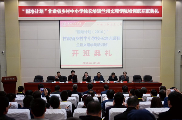 2016 年11月1日上午,由兰州文理学院承办的国培计划(2016)――甘肃省乡村中小学校长培训项目第一期校长培训班在学术报告厅举行开班仪式。省教育厅副厅长旦智塔,师范处处长敏维奇,兰州文理学院党委委员、副校长、国培项目首席专家张兆勤,兰州文理学院师范学院院长、副教授、国培办主任董小平,兰州文理学院师范学院副教授、国培办执行主任豆宏健等同志及来自定西市的150余名乡村中小学校长参加了开班仪式。开班仪式由兰州文理学院师范学院党总支书记张明荣同志主持。