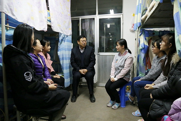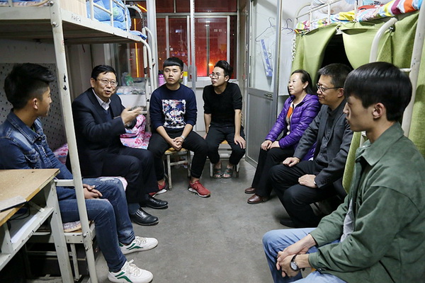 汪建华校长在走访学生宿舍的过程中,与学生亲切交谈,对学生宿舍良好的卫生情况提出了表扬,特别叮嘱同学们一定要注意自身健康和安全,从用电安全、人身安全、道路交通安全到保持良好的心理状态、处理好同学间人际关系、保持良好的学习生活习惯等一一叮嘱,他希望同学们要多交流沟通、相互学习、共同成长。在大一新生宿舍,汪校长对同学们提出的宿舍用水、楼梯间照明、学院实验室建设、职业技能的培养等问题,逐一解答,并对有关问题现场安排学校有关部门解决。在大三学生宿舍,汪校长与同学们促膝交流,谈学校发展历程,谈学校转型发展、谈新闻人的职业素养,他结合自己人生经历,告诉同学们要珍惜大学生活,多读书多思考多实践,面对挫折和机遇,要积极面对。他特别强调,作为新闻人,一定要做到政治坚定,业务精湛,要善于用独特的视角捕捉和分析新闻事件,要践行习近平总书记对新闻舆论工作者提出的48字方针要求,努力做合格新闻人才。交谈中,汪校长要求学生要经常和家中父母联系,报告自己学习生活情况。要多和学院老师沟通交流,及时解决个人学习生活中的遇到困难和问题。要和同学携手并进,使自己的大学生活丰富多彩。同时,他向随行的学院领导交代,要加强学院在转型发展中学生专业素养和职业技能的提升,对学生安全稳定工作高度关注常抓不懈,要结合近期社会和学校发生的安全方面的典型案件有针对性的开展工作,和有关部门配合,齐抓共管合力推进文明校园、平安校园的建设。