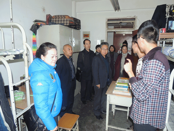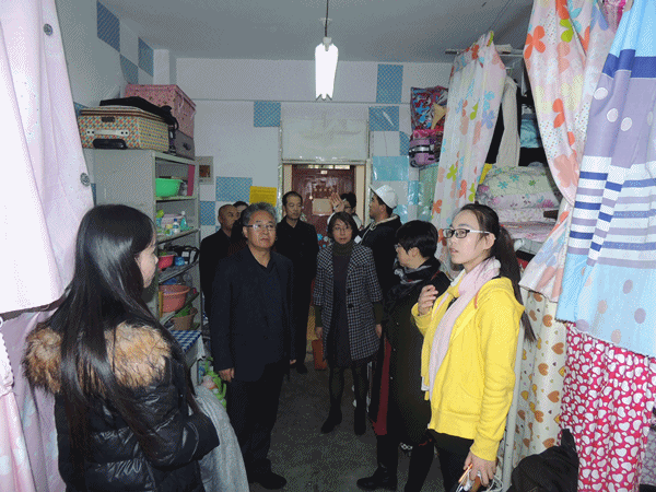 张焱副校长对学生宿舍的安全管理工作非常关心,仔细检查了学生宿舍的卫生及安全用电情况。在走访过程中和同学们进行了亲切交谈,叮嘱同学们要加强安全防范和卫生意识,在空间较为狭小的宿舍,张校长还教同学们应该如何利用空间摆放物品。检查结束后,张校长询问院领导有关学生宿舍安全管理工作的详细情况,要求院领导、辅导员、班主任必须进到学生宿舍去,定期检查学生住宿情况,排查安全隐患,给学生普及安全教育相关知识,让学生提高安全意识,养成良好的生活习惯。