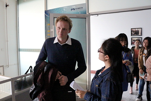 在参观的过程中,我校新闻传播学院学生也积极进行学习实践,与研习班成员进行了深入的采访、交流和学习。通过采访,美国俄州中央大学的教师杰瑞德表示,兰州文理学院的学生让他看到了一种学生身上的积极和自信,他们非常的热情,也在很努力的锻炼自己,这和他的学生们有很大不同。