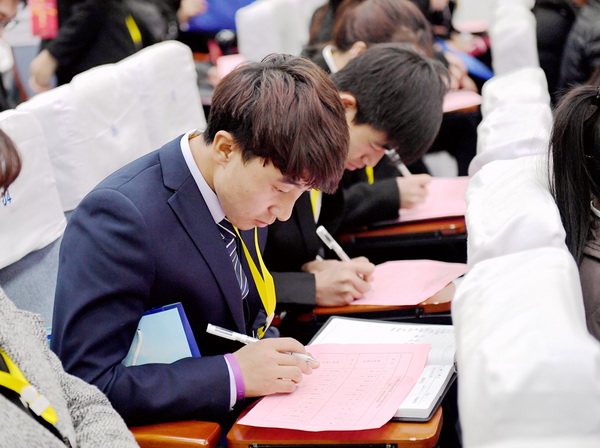 代表们填写选票