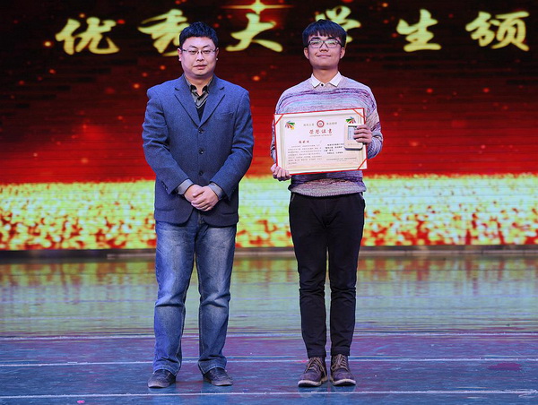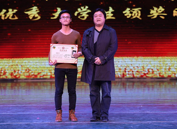 晚会现场,校党委书记史百战为退役复学士兵颁奖,校长汪建华为化工学院李雪梅同学颁发李政道奖学金,副校长郑伟强为李颖洁等同学颁发国家奖学金,校党委副书记普登学为文博会礼仪志愿者服务队颁奖,纪委书记李先锋为刘姣姣等同学颁发了国家励志奖学金,副校长张兆勤为10名“雁苑之星”提名奖获得者颁奖,副校长王克太为三好学生标兵代表颁奖,副校长张焱为优秀学生干部标兵代表颁奖。首届“我最喜欢的十大教师”代表为科技创新之星、刻苦学习之星、创业就业之星、教学实习之星、志愿服务之星、文明道德之星、爱心奉献之星、自强励志之星、文体艺术之星、学生干部之星颁奖。
