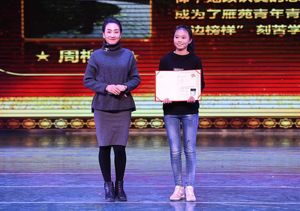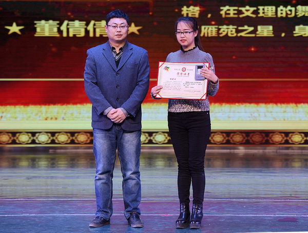 张晓玉老师为刻苦学习之星周柳秀颁奖