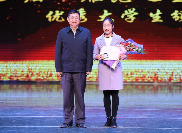 副校长郑伟强为李颖洁等同学颁发国家奖学金