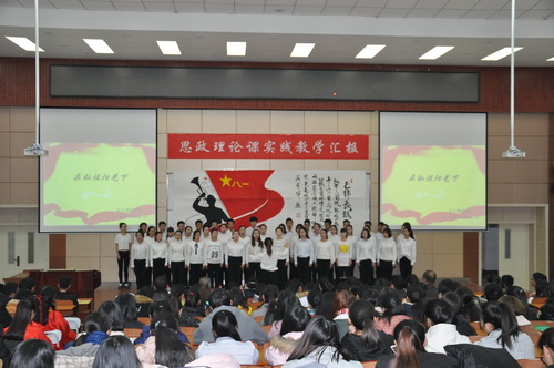 十年来,我校思想政治理论课教师开展了内容丰富、形式多样的思想政治理论课实践教学活动,受到广大同学的普遍欢迎,魅力思政火了起来。我们一直重视对学生实践能力的培养,并形成了课内实践教学便于学生参与,社会实践教学贴近现实生活,虚拟实践教学拓展教育空间,三者相互补充、相互促进,共同构成了思想政治理论课实践教学的大系统,极大地提高了课堂教学的针对性,增强了教学的实效性。特别是我们大胆创新的一年一度的“思想政治理论课实践教学成果汇报展示活动”,经过了从艰难起步、艰辛探索到广泛参与、初见成效,如今这一活动形式已常态化。通过这种新颖的实践教学模式,调动了学生学习的积极性、主动性和创造性,挖掘了学生的潜能,为学生提供了展示自我、张扬个性的平台,使思想政治理论课成为学生创新活动的广阔天地,实现理论真正“进学生头脑”,因而所取得的教育教学效果是单纯的课堂理论灌输所无法比拟的。“思想政治理论课实践教学成果汇报展示活动”也成为我校校园文化建设的一道靓丽的风景线。