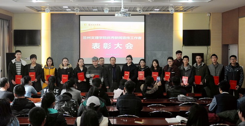 2017年1月4日,我校优秀新闻宣传工作者表彰大会在南校区视频会议室举行。校党委宣传部、信息中心及校团委联合表彰了一批优秀新闻宣传工作者。校党委宣传部部长赵学森、信息中心主任王三槐、党委宣传部副部长贺志军、校团委书记孙亮出席了本次大会。我校大学生记者团、信息中心、青媒中心的师生代表50余人参加了表彰大会。
