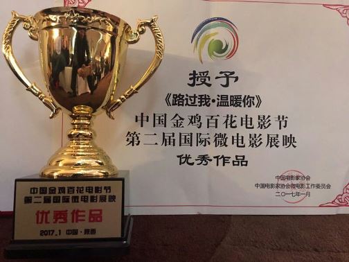 1月19日,中国金鸡百花电影节第二届国际微电影展映盛典在西安临潼颁奖。由我校特聘教授丁如玮先生与兰州广播电视传播中心创作指导的微电影《路过我,温暖你》从4300部作品中脱颖而出,与其它国际、国内114部作品共同获得优秀作品奖,这也是该片继获得第四届亚洲微电影节金海棠奖优秀作品奖(二等奖),2016年甘肃省微电影网络剧大赛一等奖后获得的又一大殊荣。