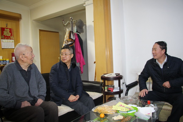 副校长张兆勤在学生处处长李宗刚、招就处副处长魏嘉的陪同下亲切慰问了老教授何国栋和退休干部王克勤。