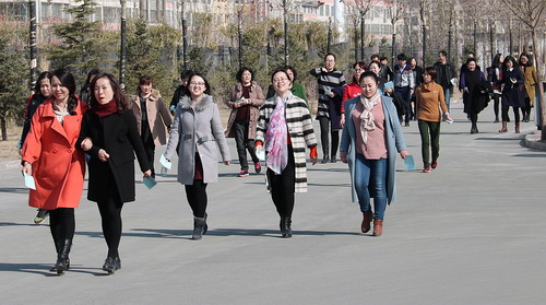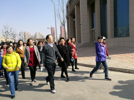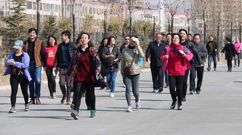 3月8日下午,我校庆“三八”“健康身体、绿色生活”教职工健步走活动在北校区校园内举行。来自全校18个分工会的200余名女教工和100多名男教工参加活动。校党委书记史百战、党委副书记普登学、纪委书记李先锋、副校长张兆勤、王克太、张焱亲临现场,为大家加油鼓劲并和教职工一起参加了健步走活动。