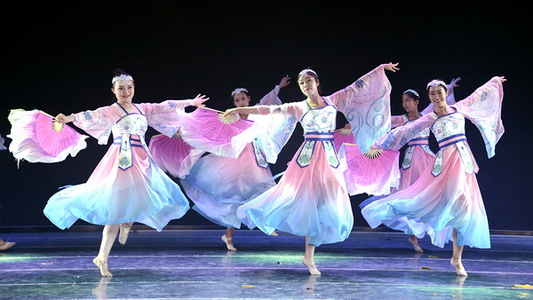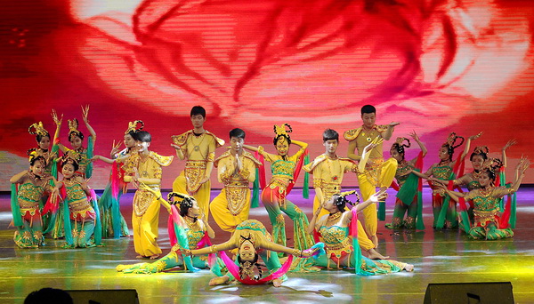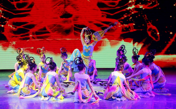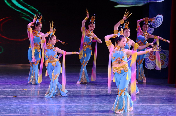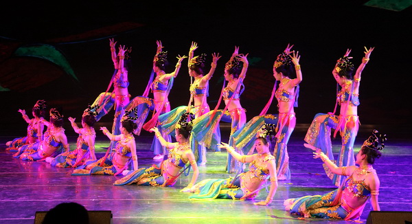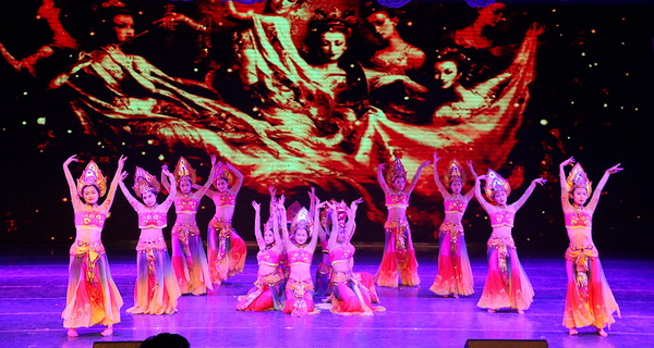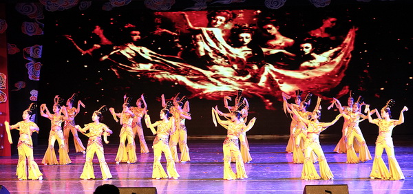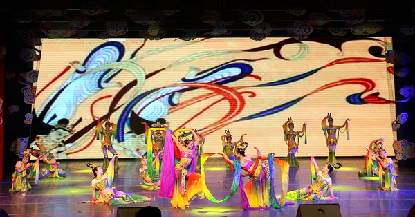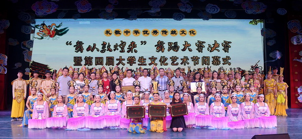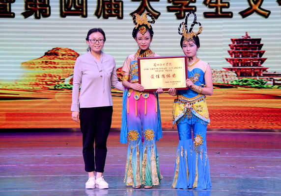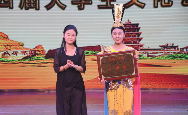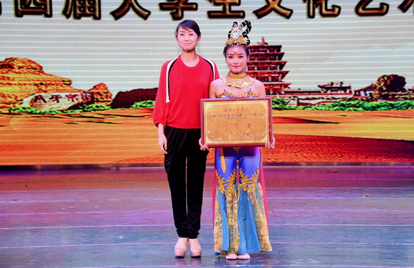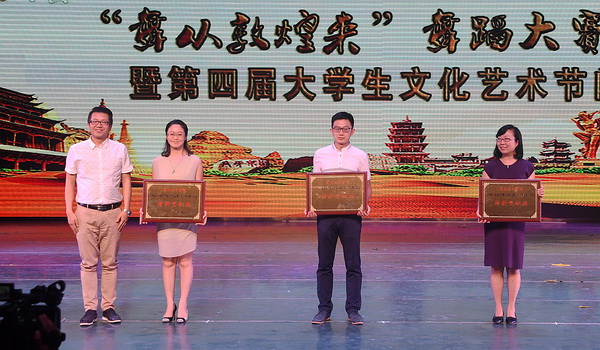 琵琶声起,舞一首霓裳羽衣曲。经过初赛的选拔来自7个学院的舞蹈闪亮登场,一展敦煌舞的妖娆婀娜和文理学子的青春风采。意境悠远的《梦回敦煌》,委婉柔美的《妙音反弹》,婀娜典雅的《丝路霓裳》,妩媚多姿的《十三姣娥梦敦煌》…… 妙手慢抚,琵琶声勾起丝路驼铃;飘带轻旋,舞台再现飞天神韵。千姿百态的敦煌舞给校园生活增添了无限生机,敦煌元素使整场比赛不仅赏心悦目,更含有深厚的文化底蕴。经过评委老师的认真评判,最终师范学院选送的《十三姣娥梦敦煌》喜得桂冠,外语院选送的《梦回敦煌》获得二等奖,旅游学院选送的《丝路霓裳》获得三等奖,数字媒体学院选送的《香音神韵》和文学院选送的《妙音反弹》获得最佳团体奖。大学生戏剧社的同学们表演了舞蹈《床前明月光》,虽是业余演员,但专业的舞蹈技艺赢得满堂彩。本届大学生文化艺术节的顺利举行,得益于各学院的精心组织和积极参与,现场还为在本届大学生文化艺术节中获得“特别贡献奖”的文学院、音乐舞蹈学院和艺术中专部颁奖。