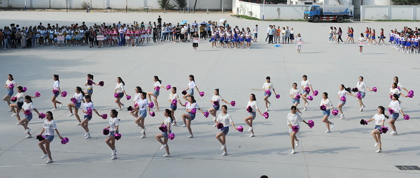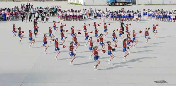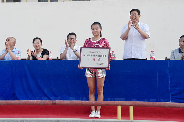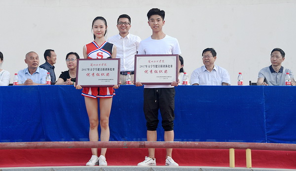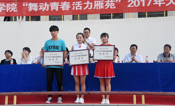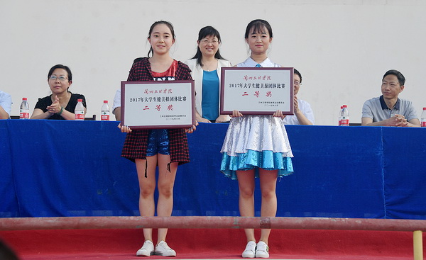 比赛在艺术中专部同学们表演的艺术体操《我们正青春》中拉开序幕。随后,来自全校12个学院的健儿们纷纷登场表演,他们青春萌动,激情洋溢,焕发火热的激情,凝聚必胜的力量,在骄阳下,他们迈着矫健的步伐,身着青春靓丽的服装,在健美操欢快的节奏中,点燃运动的激情。最终,本次比赛一等奖花落师范学院,音乐舞蹈学院和电子信息工程学院荣获二等奖,外语学院、旅游学院和文学院荣获三等奖,经济管理学院、美术学院和化工学院荣获优胜奖,社会体育学院和艺术中专部荣获优秀组织奖。与会领导为获奖集体颁奖。