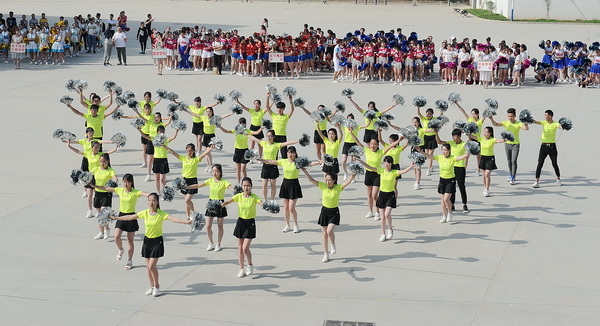 为推进我校“三走”阳光体育运动的深入开展,展示我校青年大学生朝气蓬勃、积极向上的精神面貌, 6月15日下午,2017年大学生健美操团体比赛在北校区应急广场如期举行。校长汪建华、副校长张兆勤出席。各单位、各学院相关同志与同学们一起观看了比赛。社会体育学院副院长陆克珠副院长担任裁判长,张玉萍副教授、田海滨副教授、董茜副教授、刘华梅老师、付勃翰老师担任裁判。