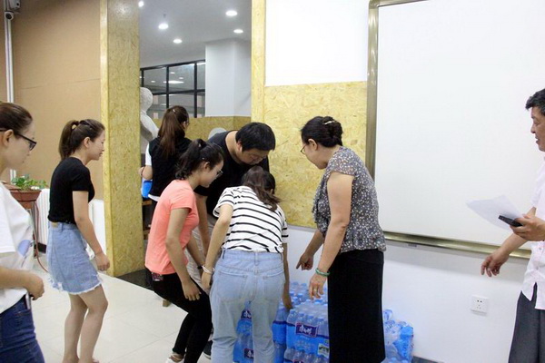 2017年7月19日上午,数字媒体学院学校联系校领导副校长郑伟强教授在学院领导班子陪同下,一同看望慰问了在38℃高温天气下仍坚持实训的18届数媒毕业生及相关校企实训老师、实验室教师和学院相关工作人员。