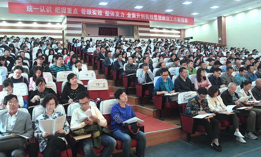 9月19日下午,学校在实验剧场隆重召开兰州文理学院思想政治工作会议。校领导史百战、刘仁义、普登学、李先锋、张兆勤、王克太、张焱出席会议,机关教辅单位全体工作人员、各教学单位党政管理人员、全体无教学任务教师、学生干部代表400余人参加了会议。会议由校长刘仁义主持。