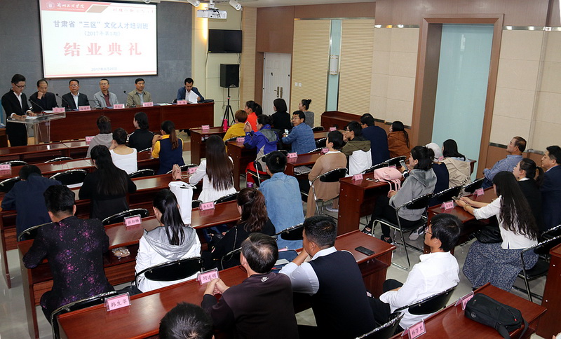 由甘肃省文化厅主办,兰州文理学院承办的2017年第一期“三区”文化人才培训班自7月17日开班至今历时70天,圆满完成了各项培训任务,于9月26日结业。结业前夕,培训班组织了“美术书法作品结业汇展”和“音乐舞蹈作品结业汇演”两项培训成果展示,并于26日下午举行了结业典礼。