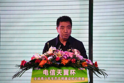 共青团甘肃省委副书记滕泽亮、青年发展与权益维护部部长杨晓蓉、宣传部兼学校部部长、省学联秘书长杨成,中国电信股份有限公司兰州分公司副总经理魏东仪,我校党委副书记普登学出席。省环境科学设计研究院生态所所长张军,省财会培训学校办公室主任、环保志愿者邱文娟担任评委。