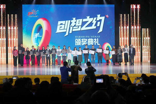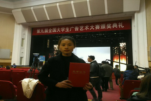 由教育部高教司指导,中国高等教育学会、教育部高等学校新闻传播学类专业教学指导委员会主办的第九届全国大学生广告艺术大赛颁奖典礼于11月24日在北京全国政协礼堂举行。1000多位来自全国31个省市自治区的广告创意传媒专业的优秀师生汇聚在一起,打造了一场创意盛宴!我院罗快同学、张惠东同学,代表我院获奖选手应邀参加了颁奖仪式。