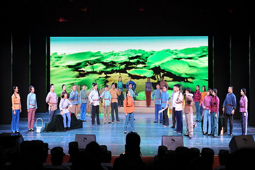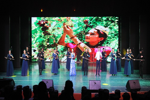 合唱《春天的信息》《沙漠之夜》拉开了本场演出的序幕。晚会节目异彩纷呈,敦煌舞《千手观音》美轮美奂;舞蹈《回族姑娘》《向着太阳升起的地方》、二胡重奏《葡萄熟了》充满了浓郁的民族风情;双排键独奏《万泉河水清又清》、笛子重奏《扬鞭催马运粮忙》让大家感受了经典旋律的优美和演奏者娴熟的技艺;歌剧《洪湖水浪打浪》选段、舞蹈《兵》充满了革命的浪漫主义情怀;兰州职业技术学院的同学们还带来了回族舞蹈《金色的汤瓶》,将晚会气氛推向高潮。演出最终在合唱《共筑中国梦》慷慨激昂的歌声中圆满落幕。音乐舞蹈学院师生表演的精彩节目展现了我校艺术类专业的办学特色,受到同学们的热烈欢迎和一致好评。