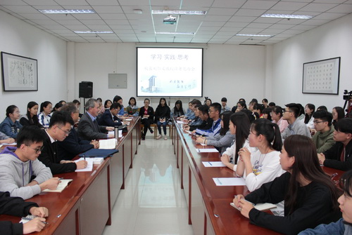 4月23日是“世界读书日”,下午2:40由图书馆、校团委共同举办的“读书 实践 思考”――校长刘仁义教授与读者见面会在图书馆九楼多功能厅进行。校团委书记孙亮、图书馆岳朋瑞、杨晓雯副馆长,及各院系师生70余人参加了此次见面会。会议由图书馆馆长王金寿主持。