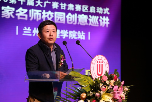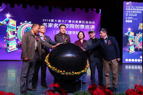 2018年5月9日,第十届大广赛甘肃赛区启动仪式暨名家名师校园创意巡讲活动在兰州文理学院实验剧场隆重举行。甘肃省教育厅高教处张晓东处长、兰州文理学院副校长郑伟强、大广赛甘肃赛区副主任兰州大学尚�教授、大广赛全国组委会张春燕老师、甘肃省新媒体艺术学会会长刘元先生等作为特邀嘉宾,以及来自全省各兄弟院校的400余名师生一同参加了启动仪式。活动由美术学院副院长仇宇主持。
