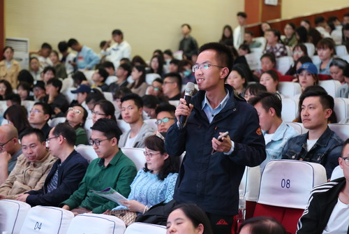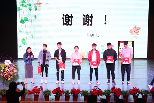 新疆统一企业食品有限公司兰州分公司经理吴太君先生、娃哈哈集团甘宁销售分公司拓展经理余小华女士为同学们做了企业命题解析。在企业嘉宾解析命题的间隙,摇一摇抽奖互动环节可以说是同学们最嗨的时刻了。主持人倒计时的口令一出,全场四百多人动作整齐划一,手机摇到地动山摇,瞬间把现场的气氛推向了高潮。