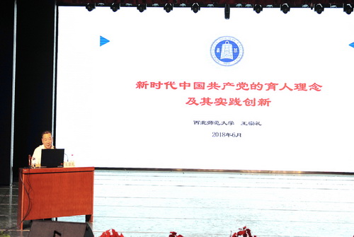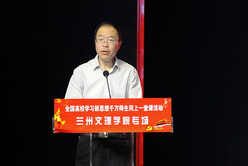 6月13日下午,全国高校“学习新思想千万师生同上一堂课活动”讲师团成员西北师范大学马克思主义学院院长王宗礼教授、甘肃中医药大学定西校区辅导员赵小红来我校作专题报告。校党委副书记普登学、纪委书记李先锋,副校长张兆勤,党群部门负责人,各党总支书记、副书记,马克思主义学院教师,各学院分团委、学工办负责人、学生党支部书记及辅导员,学生代表共计500人左右参加并聆听了报告。会议由党委宣传部部长赵学森主持。