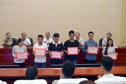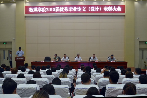 数字媒体学院副院长张毅宣读了关于表彰2018届院级优秀毕业论文(设计)的决定和名单。校长刘仁义教授为获得本科优秀毕业论文(设计)同学颁奖,副校长郑伟强教授为获得专科优秀毕业论文(设计)同学颁奖。