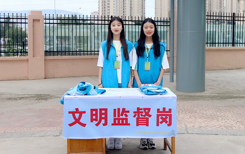 为方便外地新生及家长来校,学校分别在火车站和市内各长途汽车客运中心设立了新生迎接点,优选了多名认真负责的志愿者担任接站工作。志愿者顶着烈日帮助新生顺利出站,组织乘车。