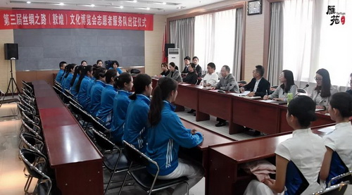 9月21日下午,兰州文理学院第三届丝绸之路(敦煌)国际文化博览会志愿者服务队举行出征仪式。校党委副书记普登学出席仪式,旅游学院、外语学院和校团委部分领导、我校文博会志愿者培训教师及文博会志愿者参加了出征仪式。