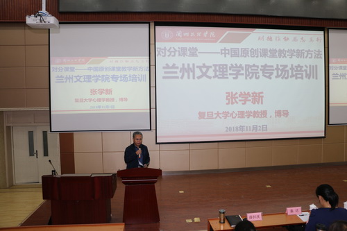 依据世行项目2018年度计划及我校教师培训计划,为引导和帮助教师进一步提升教学水平和教学能力,创新课堂教学方法,改革教学模式,激发学生学习积极性和主动性,提高课堂教学效率, 11月2日,我校特邀复旦大学张学新教授及其团队来我校开展“对分课堂―中国原创课堂教学新方法”主题教学培训。