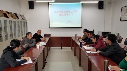 2018年11月27日下午,李敏骞副校长到化工学院实验室检查安全工作,化工学院院长展惠英、实验中心主任师海雄陪同检查。