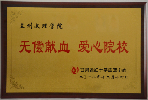近日,甘肃省红十字血液中心为我校赠送“无偿献血爱心院校”奖牌。