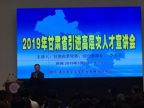 3月1日,我省2019年引进高层次人才宣讲会在清华大学学生职业发展指导中心举行。省委常委、组织部部长李元平同志出席并做了专题宣讲。省教育厅副厅长王光亚就甘肃省高校人才引进做了专门推介。省属15所本科院校和15家国有企业在宣讲会后进行了专场人才招聘洽谈。来自清华大学、北京大学、中国人民大学、中国农业大学等数十所高校近200多名应届毕业生前来聆听宣讲并进行咨询洽谈。