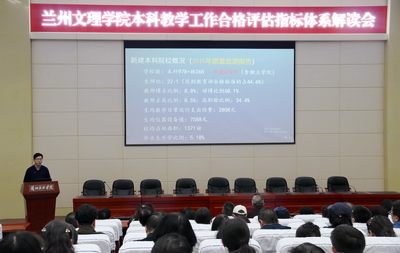 会上,评建办副主任张兴辉由本科教学合格评估的意义及新建本科院校的现状开篇,对本科教学合格评估指标体系各观测点的内涵与基本要求做了详细解读,并简要介绍了评估工作的流程和关键环节。报告穿插了实例,并结合我校实际情况作了对比分析,以便大家深入理解评估指标内涵,对照自身工作找差距,准确把握评建工作的精神实质和具体要求。