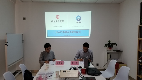 接着进行签约挂牌仪式。展惠英院长与李宏总经理共同签订了《校企产学研合作协议书》,并进行了“兰州文理学院实习就业基地”挂牌仪式。