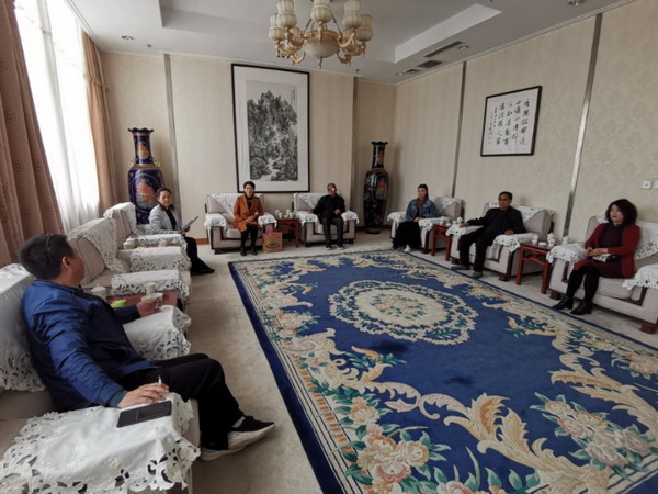 张世成、张东升、张晓娜与环县艺龙演艺公司总经理苏生辉进行调研