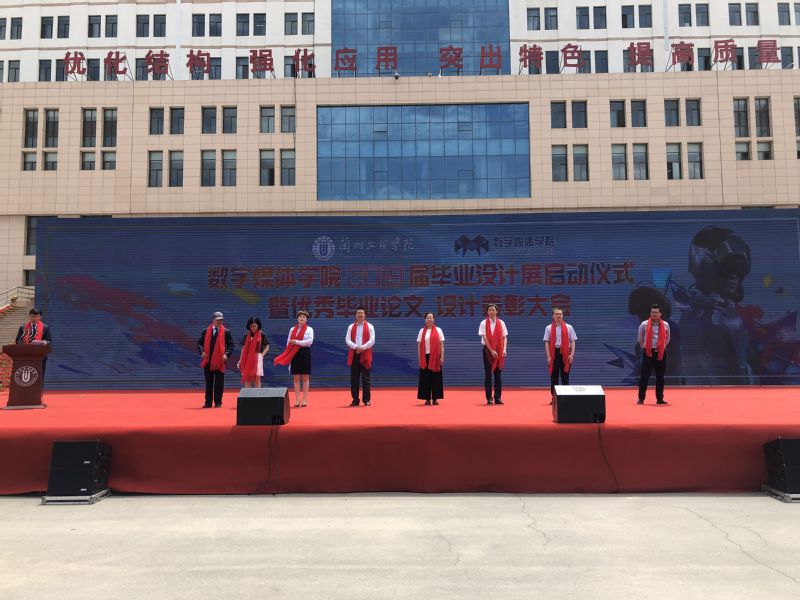 6月19日中午13:40,数字媒体学院2019届毕业设计(校内)启动仪式暨优秀毕业设计表彰大会在我校安亭广场成功举行。兰州文理学院教务处副处长胡建军教授、学生处王金平副处长、招就处副处长魏嘉副教授、校团委书记孙亮副教授、科技处科长张婷副教授以及数字媒体学院领导班子出席了此次启动仪式暨表彰大会。数字媒体学院相关教师和学院全体在校同学700余人共同见证了此次活动开幕,并参观了设计作品。本次活动由数字媒体学院院长李恒杰教授主持。