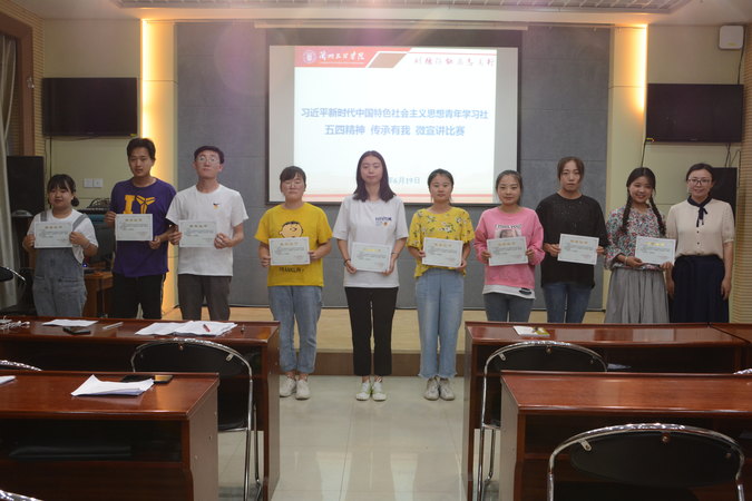 6月19日晚,习近平新时代中国特色社会主义思想青年学习社 “五四精神 传承有我”微宣讲比赛在南校区视频会议室举行。