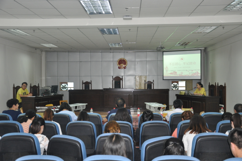 在建党98周年来临之际,6月21日下午,马克思主义学院在5-503模拟法庭举办了“不忘初心 牢记使命”学党史、知党情、强党性知识竞赛,本次知识竞赛由马克思主义学院学生党支部、分团委和教工支部联合主办,张玲佳老师主持。