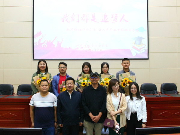 共话新闻岁月,齐瞻美好未来,6月27日晚,新闻传播学院分团委在学术报告厅举办“我们都是追梦人”新闻传播学院2019届优秀毕业生经验分享会,新闻传播学院教授刘洪艳、副教授弥建立、毕业班班主任代表王颖哲、非毕业班班主任代表陈睿姣、第一党支部书记张臻年、辅导员胡玥及2016、2017、2018级300余名学生参加了本次分享会。