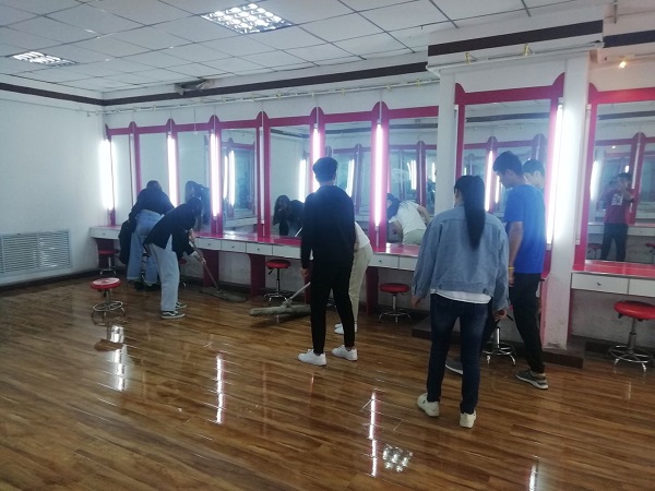 为迎接我校本科评估及促进良好学风的建设与形成,6月27日下午,我院组织2018级航空乘务专科一班的同学开展了为期一下午的义务劳动卫生大扫除活动,本次卫生扫除的地点为旅游学院的各个培训室。