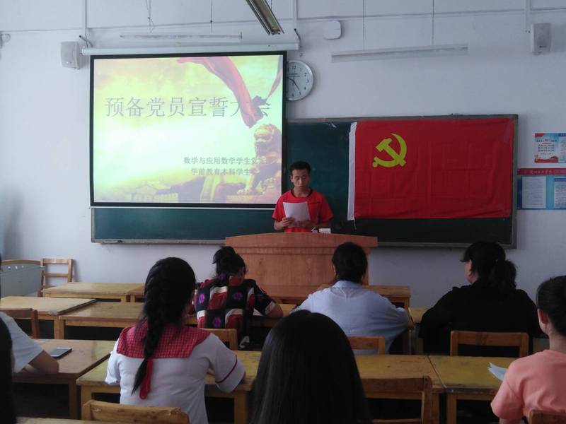 接下来,数学学生党支部书记曲丽蓉同志对新入党的预备党员表达了热烈的祝贺,并指出中国共产党是光荣、伟大的党,在中国共产党的领导下,我们国家正发生着翻天覆地的变化,作为一名合格的党员,我们一定要担负起党赋予我们伟大的责任。